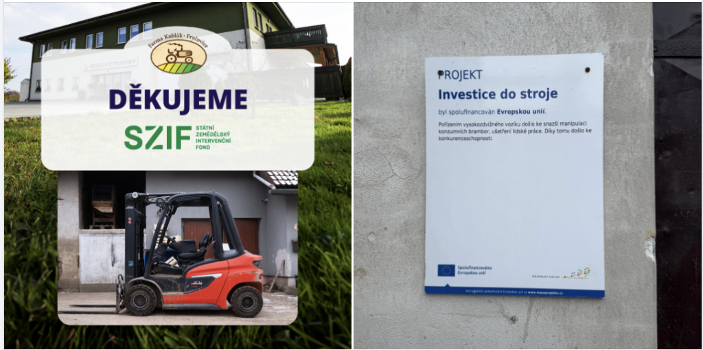 Děkujeme SZIF – Státní zemědělský intervenční fond za poskytnutou dotaci na vysokozdvižný vozík pro Jaromíra Kubláka.